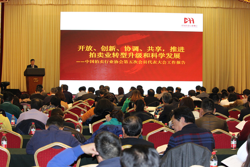 | 2015年12月12日,中國拍賣行業(yè)協(xié)會第五次會員代表大會在北京友誼賓館召開。463名中拍協(xié)會員代表從全國各地匯聚北京參加這次拍賣業(yè)五年一次的行業(yè)盛會。會議聽取了以“開放、創(chuàng)新、協(xié)調(diào)、共享,推進(jìn)拍賣業(yè)轉(zhuǎn)型升級和科學(xué)發(fā)展”為主題的第五次會員代表大會工作報告。選舉產(chǎn)生了中拍協(xié)第五屆理事會,選舉余平為中拍協(xié)五屆理事會會長,選舉張延華為名譽會長。 國資委、商務(wù)部、民政部、物流與采購聯(lián)合會等部門領(lǐng)導(dǎo)出席會議并致開幕辭。