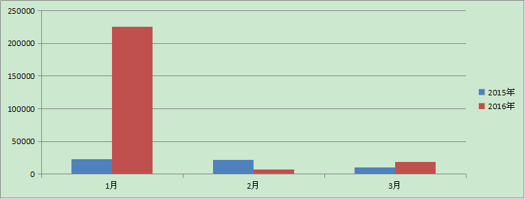 內蒙古地區(qū)2016年第一季度拍賣經營統(tǒng)計數據分析 據全國拍賣行業(yè)管理信息系統(tǒng)顯示,截止3月底,全區(qū)共有拍賣企業(yè)146家,其中分公司4家。從業(yè)人員789人,拍賣師196人。2016年第一季度,拍賣成交131場,同比下降21% ,流拍112場,同步下降25%,實現成交額252255.74,同比增長355.9%,傭金收入465.85,同比下降26%。上繳稅收24.45,同比下降45%。利潤132.9,同比下降43%。 一、2016年一季度經營情況 根據經驗統(tǒng)計數據情況分析顯示:2016年第一季度與2015年同期相比除2月份下降64%,其余1月、3月均有上漲。其中1月份增長率高達864%。 2016年第一季度成交額情況 單位:萬元 | 1月 | 2月 | 3月 | 2015年 | 23391.06 | 21545.89 | 10395.36 | 2016年 | 225717.05 | 7562.07 | 18967.17 |
