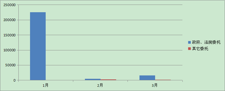 1月和3月政府、法院委托成交額仍然是主要來源,2月份其他社會委托出現增長。