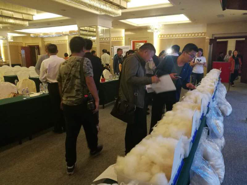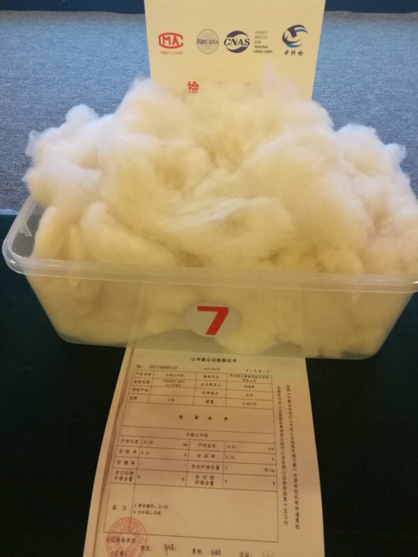 本次羊絨拍賣以無毛絨為主。羊絨拍賣企業(yè)在技術(shù)部門和合作社的配合下,對合作社社員的優(yōu)質(zhì)羊絨(纖維細(xì)度14.5微米以下)按高于市場價(jià)20~40元每公斤收購。企業(yè)對已收購的原絨通過認(rèn)真分選和再分級后分梳出無毛絨,并按分梳批次將擬拍賣的無毛絨裝入纖維檢驗(yàn)部門指定的包裝袋,經(jīng)自治區(qū)纖維檢驗(yàn)部門公證檢測后統(tǒng)一打包封存,出具公檢證明,進(jìn)入拍賣環(huán)節(jié)。拍賣成功后,企業(yè)可將部分拍賣收益以二次分紅的形式通過合作社獎(jiǎng)勵(lì)給供絨牧戶。各環(huán)節(jié)需要見證人及照片、音像資料佐證。