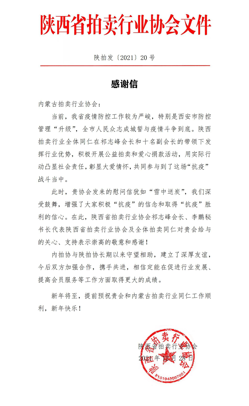 陜西拍協(xié)感謝信