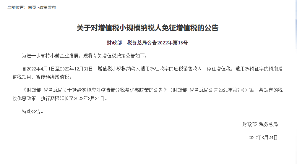 關于對增值稅小規(guī)模納稅人免征增值稅的公告